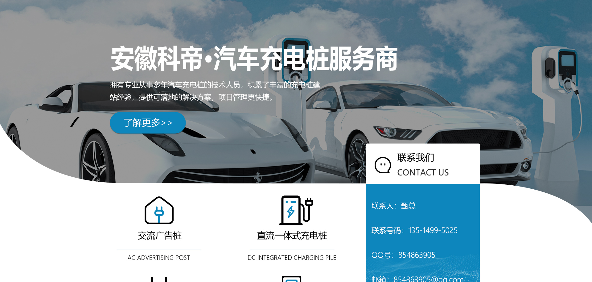 關(guān)于我們安徽科帝新能源科技有限公司坐落于安徽省會(huì)-合肥,是一家研發(fā)、生產(chǎn)智能充電樁設(shè)備,汽車充電站后臺(tái)監(jiān)控管理系統(tǒng)和生產(chǎn)高壓開關(guān)設(shè)備的企業(yè).由專門的研發(fā)團(tuán)隊(duì)、管理團(tuán)隊(duì)按照現(xiàn)代化企業(yè)制度規(guī)范設(shè)立的有限責(zé)任公司。致力于為能源智能、安全的應(yīng)用和節(jié)能減排提供整體的技術(shù)與產(chǎn)品解決方案。科帝集研發(fā)、設(shè)計(jì)、生產(chǎn)、銷售以及服務(wù)于一體,在電動(dòng)汽車充電方案,充電設(shè)施建設(shè)和城市配電方面擁有廣泛的技術(shù)研究及經(jīng)驗(yàn)積累,為客戶提供安全、智能的充電設(shè)備及充電運(yùn)營(yíng)站建設(shè)一體化解決方案。并堅(jiān)持以人為本、質(zhì)量為先、顧客至上、不斷創(chuàng)新”的企業(yè)理念,為能源行業(yè)的發(fā)展、節(jié)能減排做出重大的貢獻(xiàn)。公司擁有豐富的產(chǎn)品種類,目前科帝已研發(fā)生產(chǎn)了三十多種產(chǎn)品,充電設(shè)備有直流一體式充電樁、直流分體式充電樁、直流廣告樁、交流廣告樁、廣告一體樁、壁掛交直流樁;等多種充電設(shè)備;每一款產(chǎn)品都是精心打造,力求為客戶提供優(yōu)越的用戶體驗(yàn)。展望未來科帝將通過持續(xù)的自...